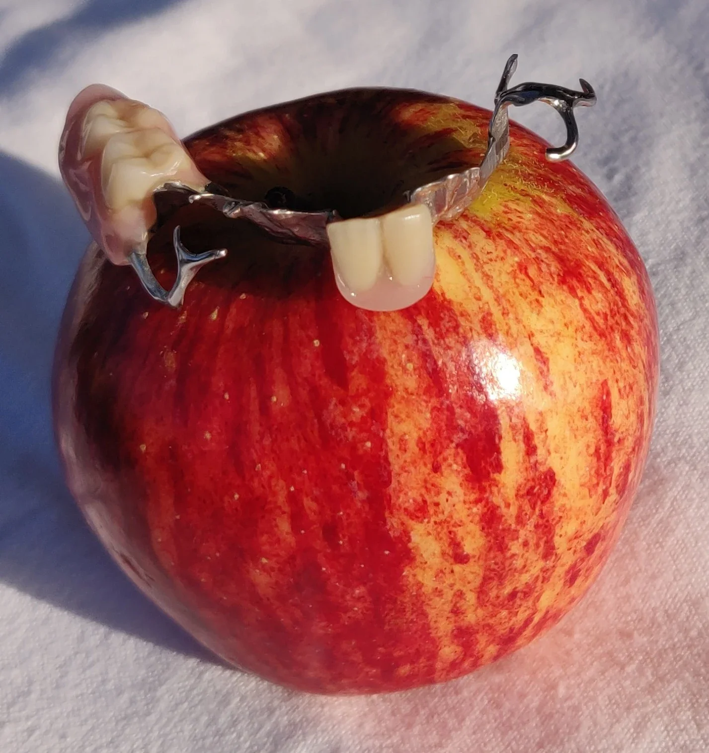 I had an original denture but bent it beyond repair while chewing on a hamburger. Ouch. 🍔🙄